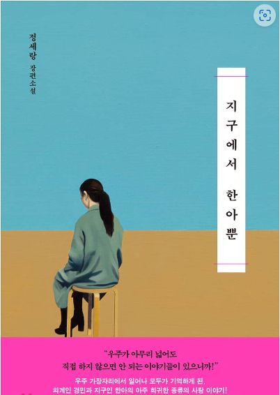 너무나 신선한 이야기였습니다. 작가들은 참 대단하다는 생각이 또 한번 드는 그런책입니다. 내가 가지고 있는 외계인에 대한 생각은 참 단순하구나 싶었고, 이런 상상의 나래를 펼치게 해 줘서 고마운 책입니다. 우주라는 공간을 더욱 꽉 채워주고 그 공간에서 살아가는 생물체와 지구의 어우러짐을 생각해 볼수 있었고 더불어 환경에 대한 생각이 많아지는 책이었습니다. 주인공 한아같은 사람이 세상에 많았으면 좋겠다는 마음과 나도 그런 사람이 되길 생각하게 되었습니다. 사랑, 환경, 우주 등 다채로운 주제들이 잘 어우러져 제목부터 책과 너무나 잘 어울린다는 생각이 들었고, 자꾸자꾸 생각나는 그런 책입니다. 정세랑 작가님 책을 더 찾아 읽어봐야겠습니다.